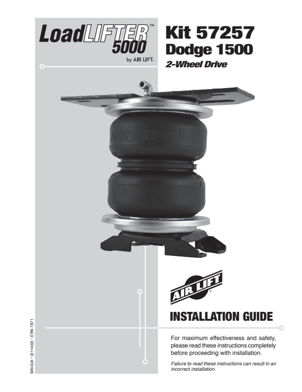 Air Lift adjustable air helper springs level your load, and give your Half-Ton truck a safer, more comfortable ride. Air springs are easy to install between your axle and the vehicle frame. Just add air when towing or hauling a heavy load, and reduce air pressure when unloaded, they are fully adjustable for a great ride. Air Lift air springs eliminate sag, sway, and bottoming out. They are made with rugged, durable components for long, reliable service. LoadLifter 5000 Heavy Half-Ton adjustable kits are Air Lift's heaviest-rated kits for hauling or towing heavy loads. They have leveling capacity right up to the manufacturer's recommended Gross Vehicle Weight Rating, and are air adjustable from 5 to 100 PSI. LoadLifter 5000 Heavy Half-Ton adjustable kits fit such popular vehicles as 1/2, ton and one-ton pickup trucks, many Class A, B & C motor homes, and commercial trucks and other severe uses. They also come standard with a limited lifetime warranty and an exclusive 60 day ride satisfaction guarantee.