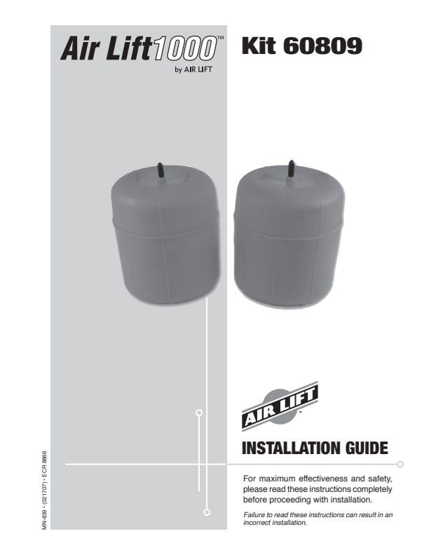 Air Lift adjustable air helper springs level your load, and give your truck, van, or SUV a safer, more comfortable ride. Air springs are easy to install inside the existing coil spring with common mechanic's tools. Just add air when towing or hauling a heavy load, and reduce air pressure when unloaded, they are fully adjustable for a great ride. Air Lift air springs eliminate sag, sway, and bottoming out. They are made with rugged, durable components for long, reliable service. Air Lift 1000 kits fit many popular customer vehicles with coil springs. They're designed to: add support to rear springs on many popular SUVs, replace OEM front air springs on P-30 motor homes, provide front end support for snowplows, winches, etc., improve muscle car traction for drag racing, and improve ride and handling for full-size vans and trucks with front coil springs. Air adjustable with quick connecting, easy-to-use air fittings, Air Lift 1000 air helper springs have a typical max pressure of 35 PSI on cars and SUVs, and 90 PSI on motorhomes. They also have up to 1000 pounds of leveling capacity, right up to the manufacturer's recommended Gross Vehicle Weight Rating. Air Lift 1000 kits also come standard with a limited lifetime warranty and an exclusive 60 day ride satisfaction guarantee.