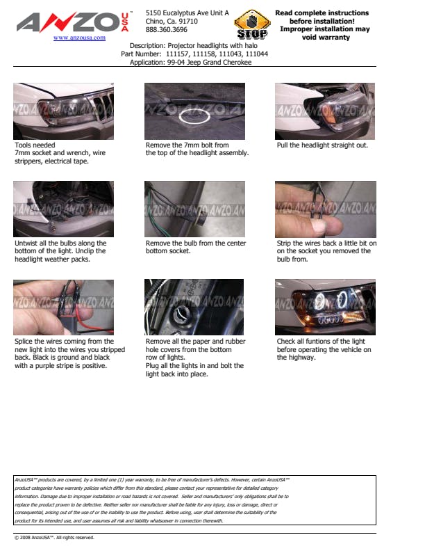 Projector Headlight Set, w/Halo, Clear Lens, Chrome Housing, Pair, . Guaranteed To Improve Your Vehicles Appearance. Rigorously Tested For Fit And Function. Simple Plug And Play. No Modifications Required. Easy Installation Using Common Hand Tools. Uses Stock Mounting Locations And Hardware. D.O.T. Compliant To S.A.E. Standards. Sold As A Pair. Does Not Fit Cherokee Models.