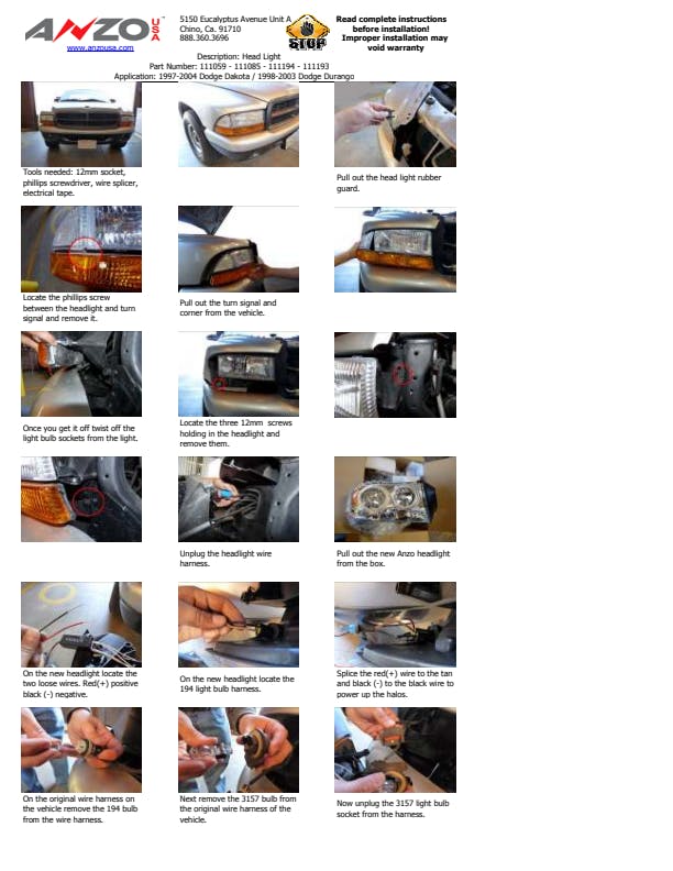 Guaranteed To Improve Your Vehicles Appearance; Rigorously Tested For Fit And Function; Simple Plug And Play; No Modifications Required; 1 Year Warranty Covering Any Manufacturers Defects; Easy Installation Using Common Hand Tools; Uses Stock Mounting Locations And Hardware; D.O.T. Compliant To S.A.E. Standards; Sold As A PairApplication Summary: