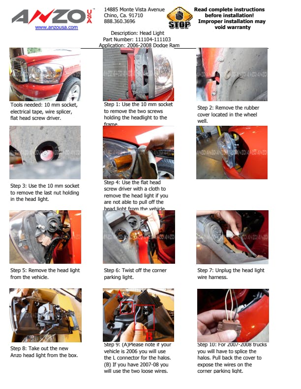 Guaranteed To Improve Your Vehicles Appearance; Rigorously Tested For Fit And Function; Simple Plug And Play; No Modifications Required; 1 Year Warranty Covering Any Manufacturers Defects; Easy Installation Using Common Hand Tools; Uses Stock Mounting Locations And Hardware; D.O.T. Compliant To S.A.E. Standards; Sold As A PairApplication Summary: