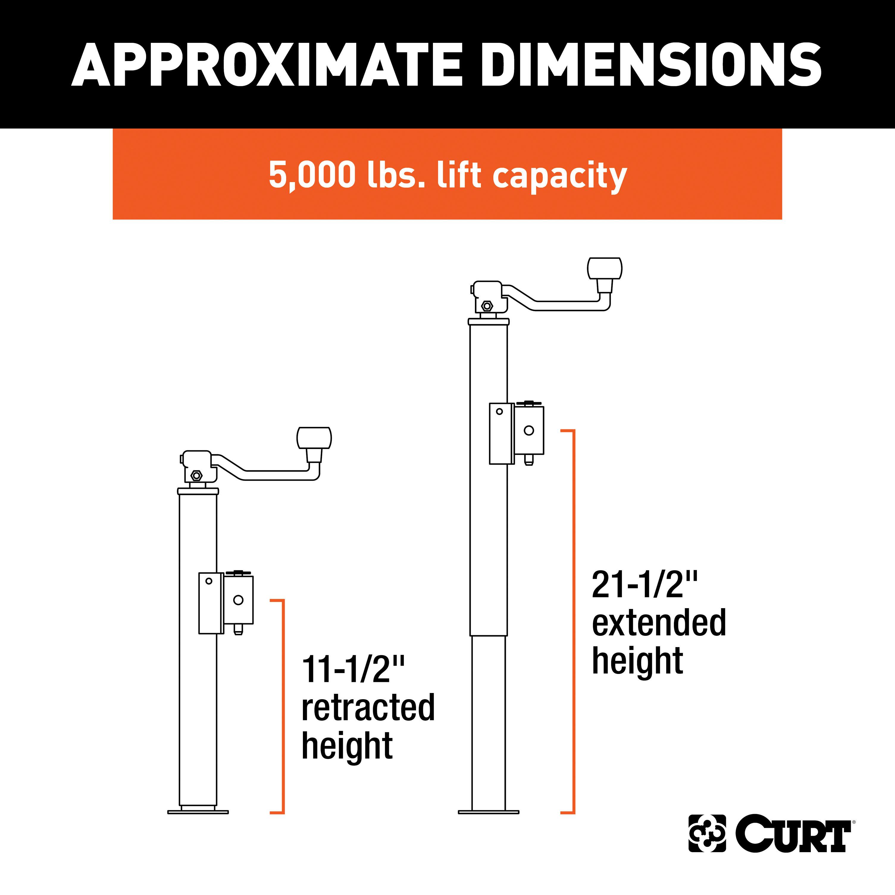| CURT | 28350 Weld-On Pipe-Mount Swivel Trailer Jack, 5,000 lbs. Support Capacity, 10-3/4 Inches Vertical Travel |